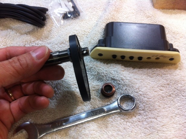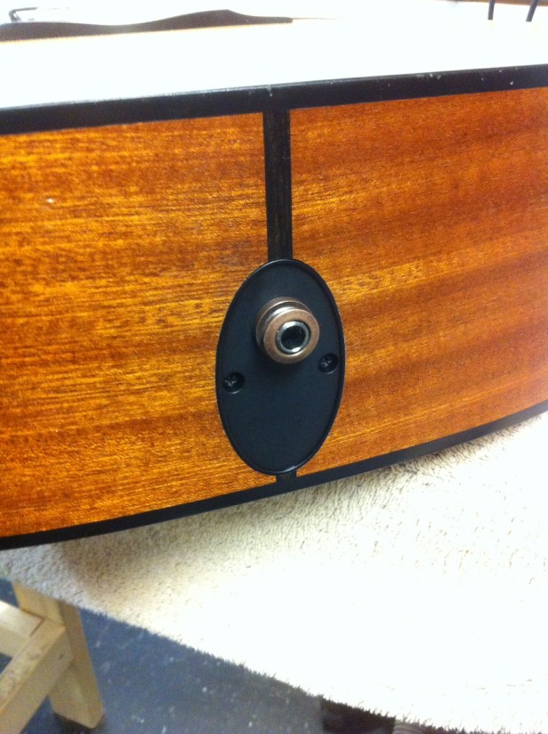 The other component installs in the exact same space formerly occupied by the Taylor system’s input jack and battery pack housing, and serves as a sturdy receptacle in which to install another flush mount input jack and strap button.
