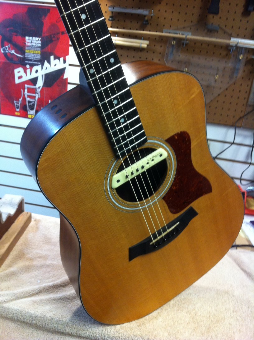 Option 2: You can sell the guitar, and get another from a different company with either the electronics of your choice already installed, or the open architecture needed to easily install any aftermarket product you choose. This makes some players sad because they love their Taylor guitar. Other players go ahead and just make the jump. I’ve come across players who sold their Taylor ES guitar and ordered the same model from Taylor, sans the Expression System, then brought it in to have me install a pickup of their choice. No kidding! They really love their Taylor guitar. Go figure.