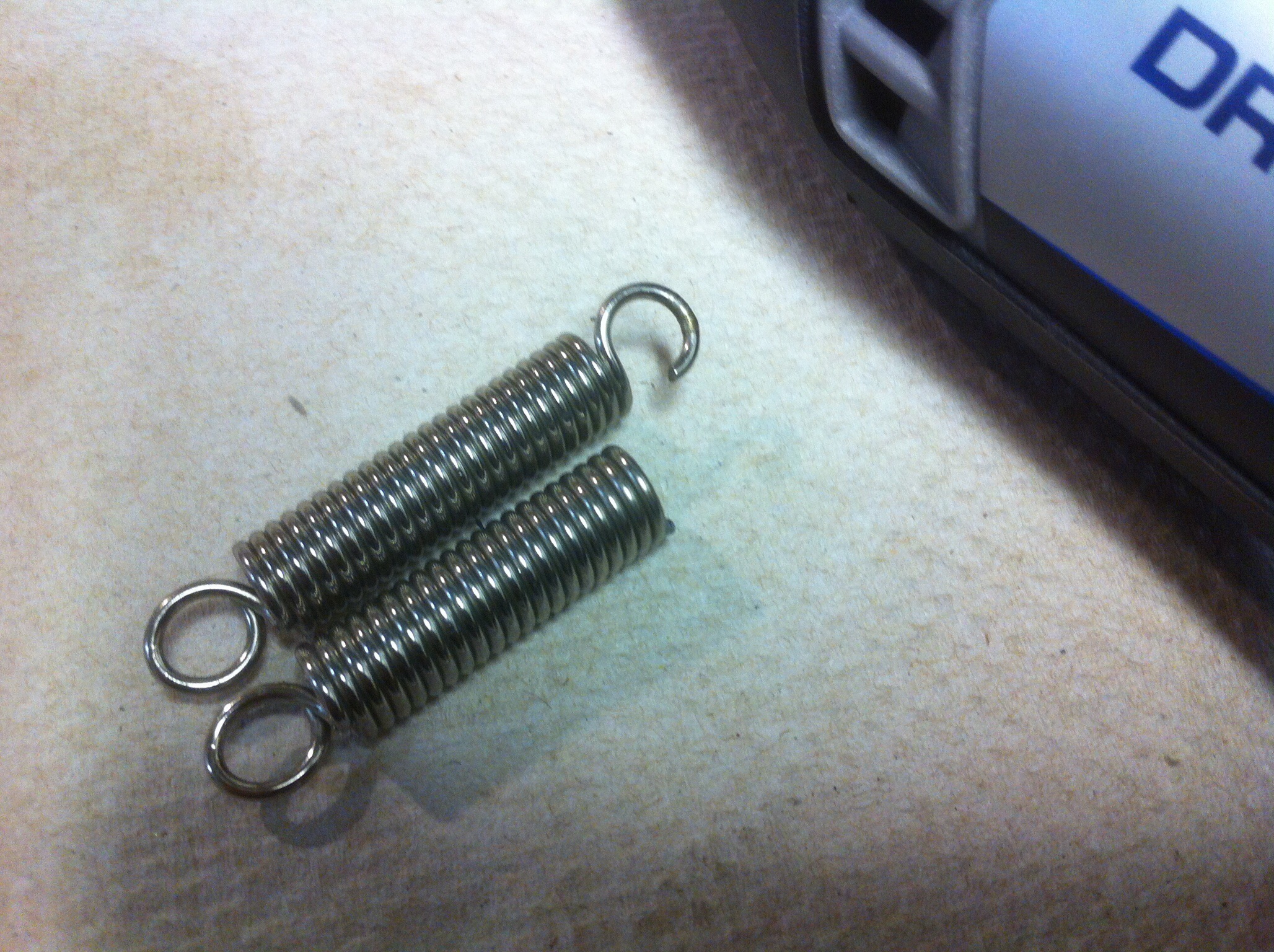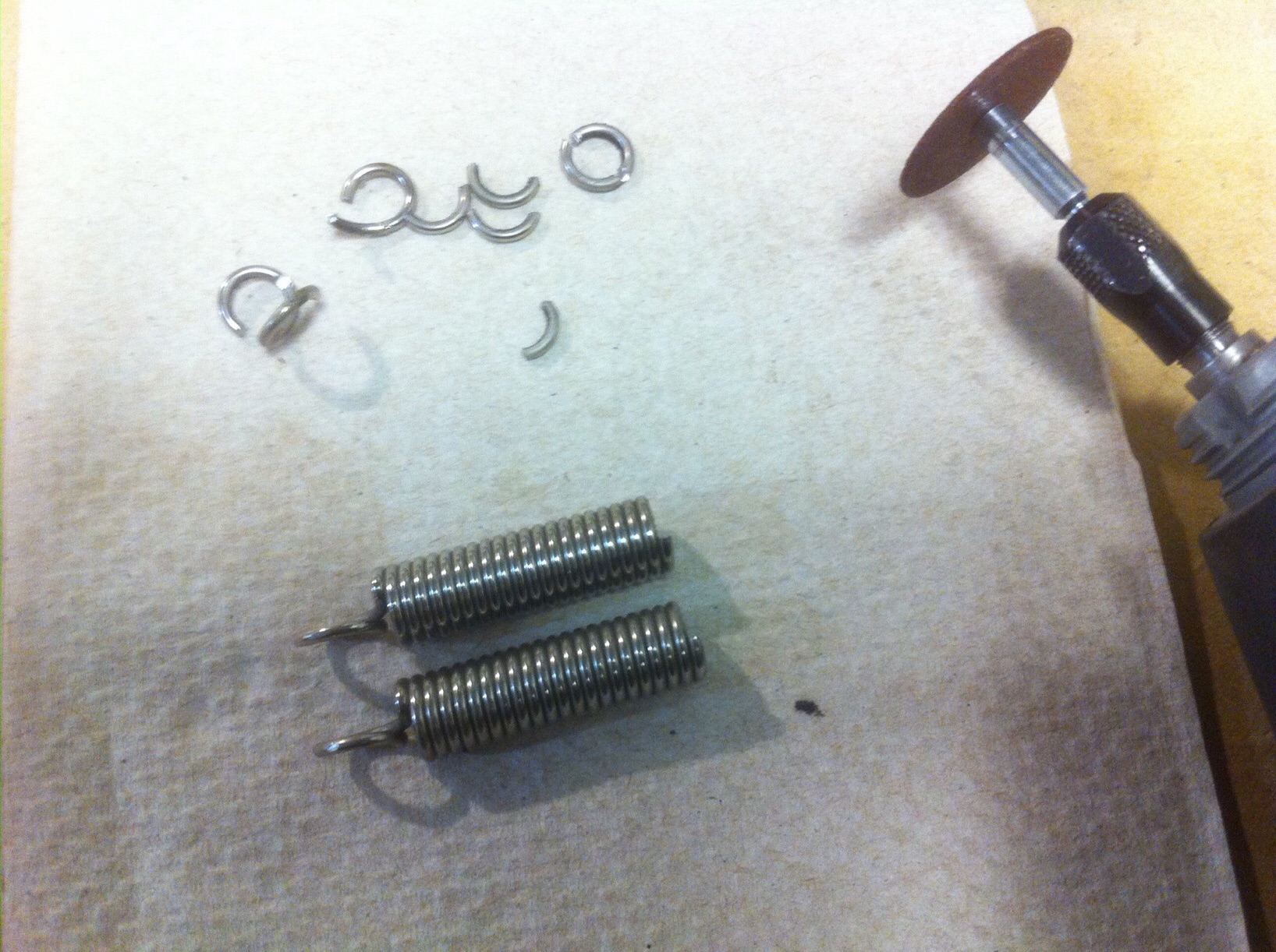 After modifying one of the springs I compared it to the original length of the other. Satisfied I had taken enough off I then shortened the second spring. Both springs where now shorter and the same length.