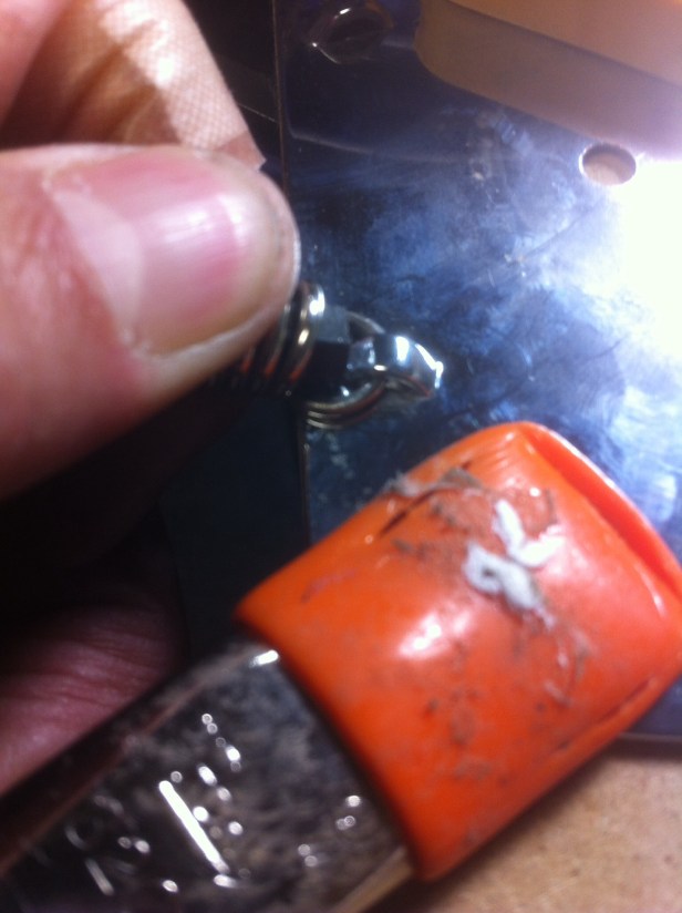 This presented the next challenge: reshaping the hooked ends that fasten to the bottom of the base plate. To do this without risking breaking and/or mangling the chrome springs, I needed to find a way to keep the spring from bending while I reshaped the ends. I reasoned that if I had something rigid to fit inside the spring, and slightly shorter than the spring, it would provide a fulcrum to facilitate the task. A cast iron allen wrench about the same diameter as the inside of the coil and cut down to just about the same length as the shortened spring did the trick!