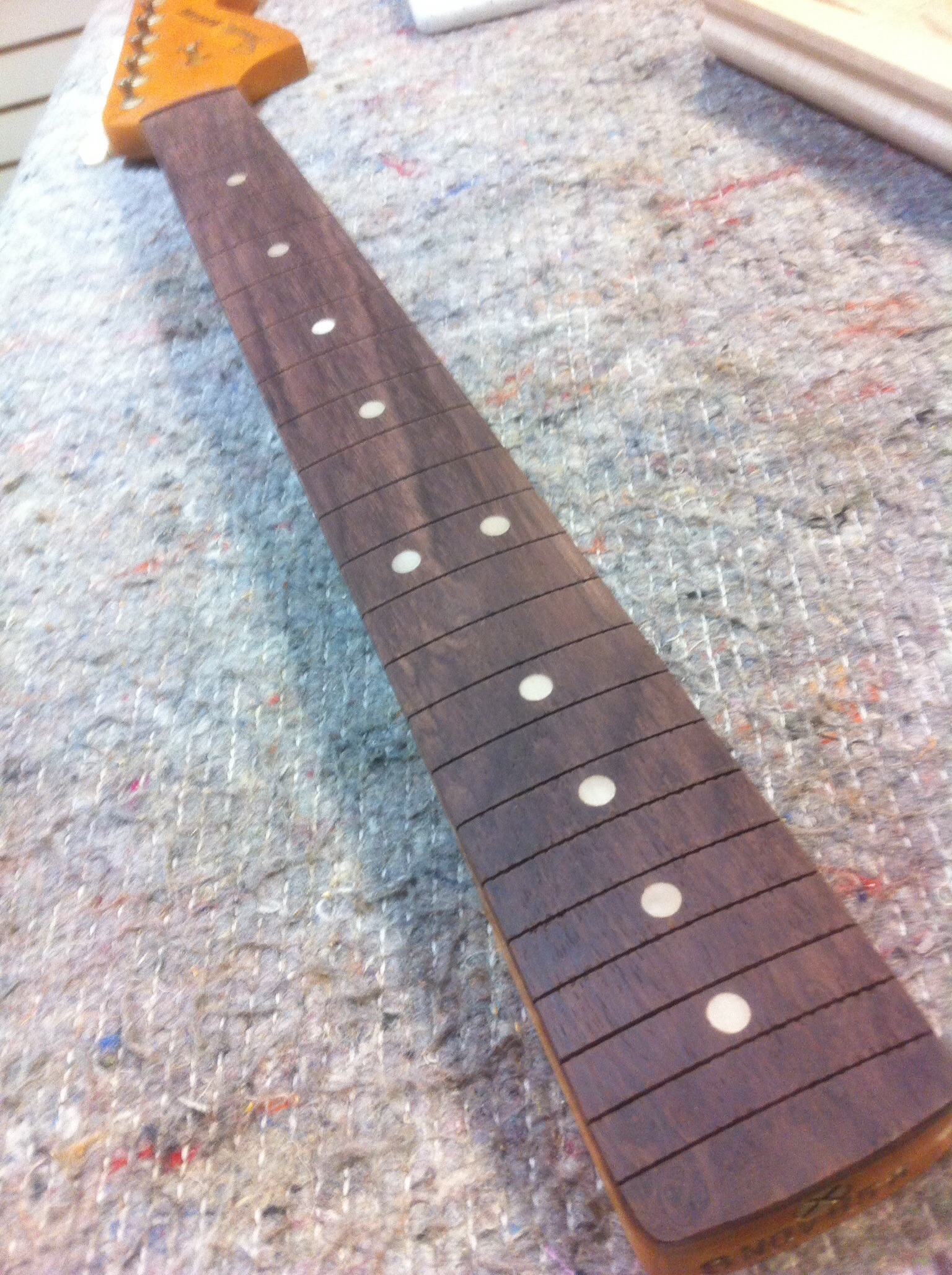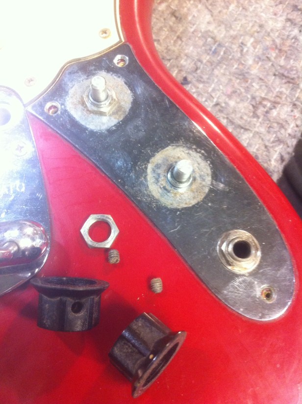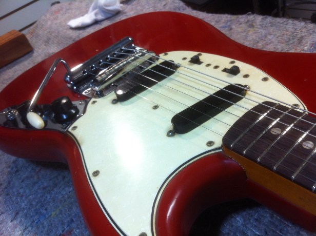 And now for some more shots of the repair, restoration, and setup of the ’65 Fender Mustang…